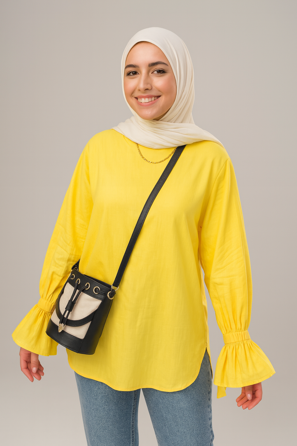 بلوزة كتان اسباني ستايل عصري، مصنوعة من خامة كتان اسباني تديكي إحساس بالفخامة على بشرتك، ومناسبة للبس اليومي أو الخروج.